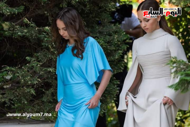 تألقت الأميرة إيمان بفستان عاجي طويل للمصمم السعودي محمد آشي، وارتدت الأميرة سلمى فستاناً من الساتان الحريري بلون التركواز من ستيلا ماكارتني