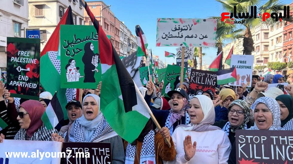 وأفاد بأن الرسالة الثالثة هي “الاحتجاج على الولايات المتحدة الأمريكية والدول الاستعمارية،على استمرارها في دعم الكيان الصهيوني إذ نعتبرها شريكا في الحرب ضد الإنسانية، وكذلك الاحتجاج على الصمت الدولي أمام التدمير والحرب التي لم يسبق للإنسانية أن عرفتها، والاحتجاج أبضا على الحكومة المغربية ومطالبتها للاستجابة لصوت الشعب لا للتطبيع، لا لمكتب الاتصال مع الكيان الصهيوني في الرباط، ولا لوجود أي ممثل للكيان الصهيوني في بلادنا”.