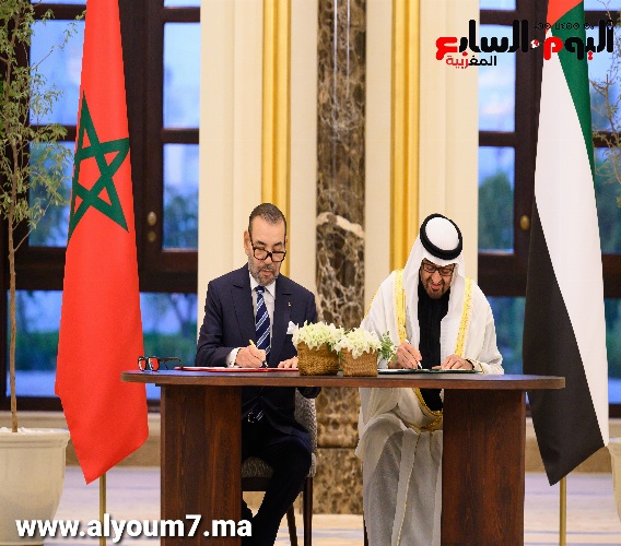 وقع صاحب الجلالة الملك محمد السادس، وصاحب السمو الشيخ محمد بن زايد آل نهيان، رئيس دولة الإمارات العربية المتحدة، اليوم الاثنين بأبوظبي، إعلان “نحو شراكة مبتكرة ومتجددة وراسخة بين المملكة المغربية ودولة الإمارات العربية المتحدة”، الذي يروم الارتقاء بالعلاقات والتعاون الثنائي إلى آفاق أوسع، عبر شراكات اقتصادية فاعلة، تخدم المصالح العليا المشتركة وتعود بالتنمية والرفاه على الشعبين الشقيقين.