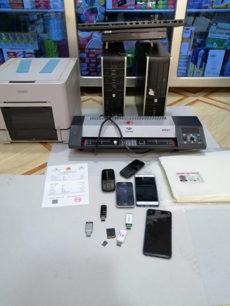 كما مكنت عمليات التفتيش أيضا من حجز ثلاث بندقيات للصيد و33 عيار ناري ومجموعة من الحواسيب والهواتف المحمولة، علاوة على معدات لتخزين المعطيات الرقمية وأجهزة للطباعة ومعدات لتزوير لوحات ترقيم المركبات، ومبالغ مالية بالعملة الوطنية والأجنبية يشتبه في كونها من متحصلات هذا النشاط الإجرامي.