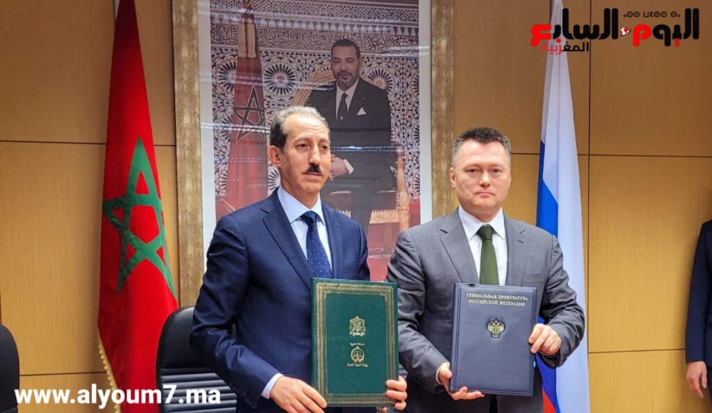 جرى اليوم الجمعة بالرباط، التوقيع على مذكرة تفاهم بين رئاسة النيابة العامة بالمغرب، والنيابة العامة لروسيا الاتحادية، تروم تعزيز التعاون في مجموعة من المجالات ذات الصلة بعمل النيابة العامة.