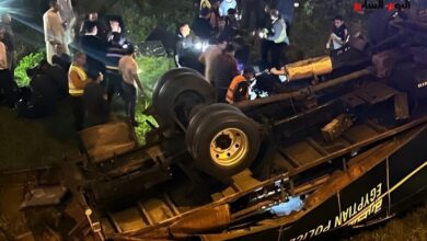 مصر…انقلاب مروع لسيارة ترحيلات شرطة تحمل 22 فردا