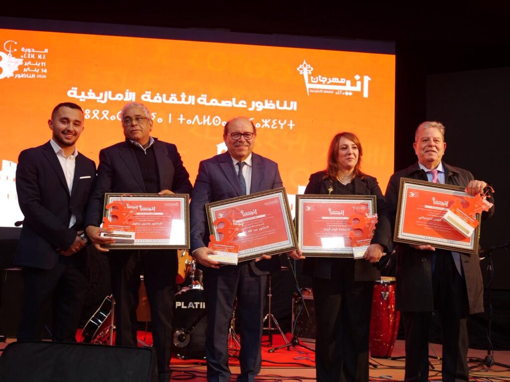 وشهدت فعاليات الحفل تكريم ثلة من الشخصيات البارزة والفاعلة في مجالات متعددة، عرفانا بإسهاماتها العلمية والمهنية والثقافية، ويتعلق الأمر بكل من الدكتور عبد الله بوصوف، الأمين العام لمجلس الجالية المغربية بالخارج، والدكتور ياسين زغلول، رئيس جامعة محمد الأول بوجدة، والسيد عبد القادر بنيحياتي، النقيب السابق لهيئة المحامين بالناظور والحسيمة، إلى جانب الأستاذة كوثر أزيرار، الإعلامية بالقناة الثامنة الأمازيغية، وذلك في لحظات وفاء وتقدير لمسارات متميزة في خدمة مختلف المجالات.